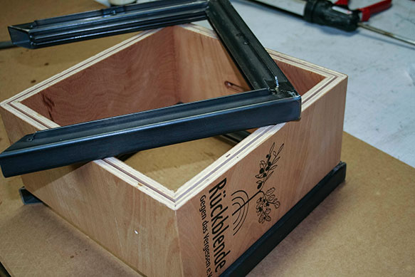 Dadurch, dass der Stahl roh ist, wird er im Laufe der Zeit Rost und Patina ansetzen. Wir fanden, das Vergängliche und das Leid, an das der Verein Rückblende e.V. erinnert, veträgt keine stromlinienförmige Gestaltung und blitzsaubere Oberflächen. |