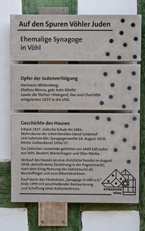 und präsentierte viele Details zu den jeweiligen Hausstätten. Um diese Details Menschen, die die Tafeln ohne Führung besuchen, dauerhaft zur Verfügung stellen zu können, ist an jeder Gedenktafel ein QR-Code mit angebracht. Mit den heutigen Smartphones kann dieser Code abfotografiert werden. Er eröffnet dann den Zugang zu den weiterreichenden Information direkt auf der Webseite der Synagoge in Vöhl.