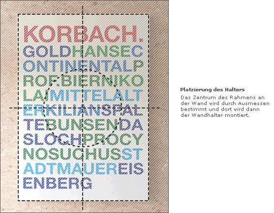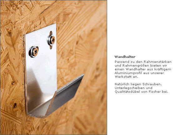 Alle mit dem Wandhalter bestellten Rahmen werden mit einer waagrechten Strebe zum Einsetzen auf den Halter hergestellt.