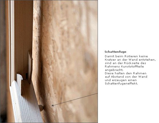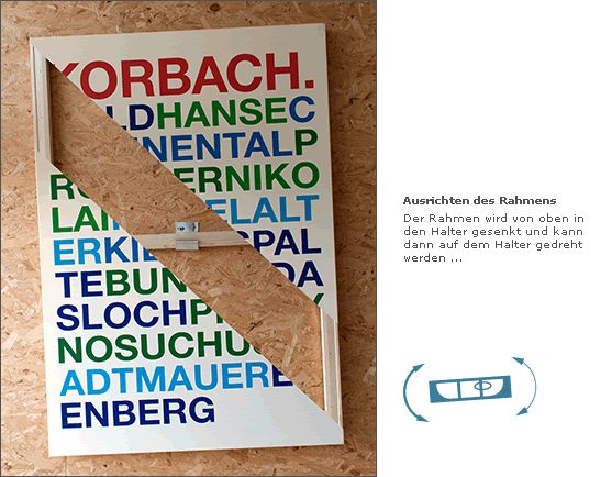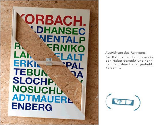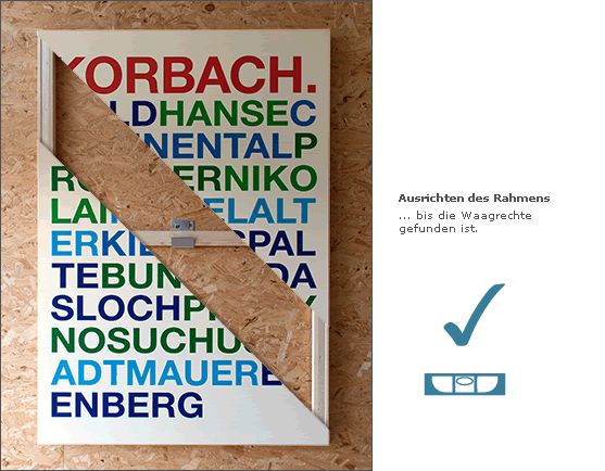 Da wo andere Haken und Nägel oder komplizierte Schienensysteme anbieten, haben wir eine einfache, auf unsere Rahmen zugeschnittene Lösung parat.